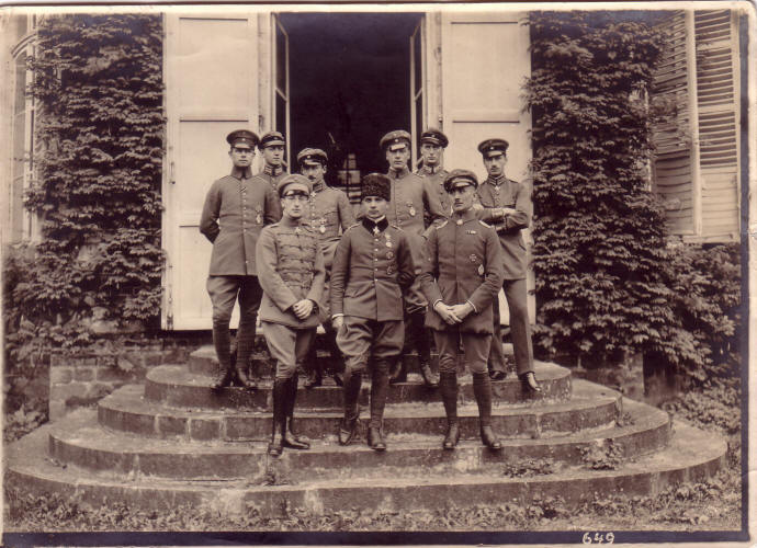 Gruppenfoto der Jagdstaffel 4 vor dem Schloß Vaux.
