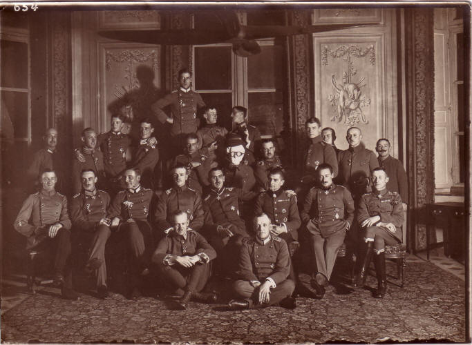 Feier der Offiziere anlässlich der Verleihung des Pour-le-merite an Rudolf Berthold am 12.10.1916 im Schloß Vaux.